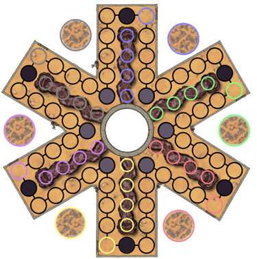 Roll-and-move dice mechanic, circular structure, simple game flow