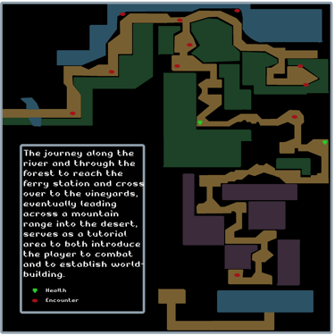 I began by designing the game's regions and world map, laying the foundation for coherent level transitions and narrative pacing before any implementation in Godot.